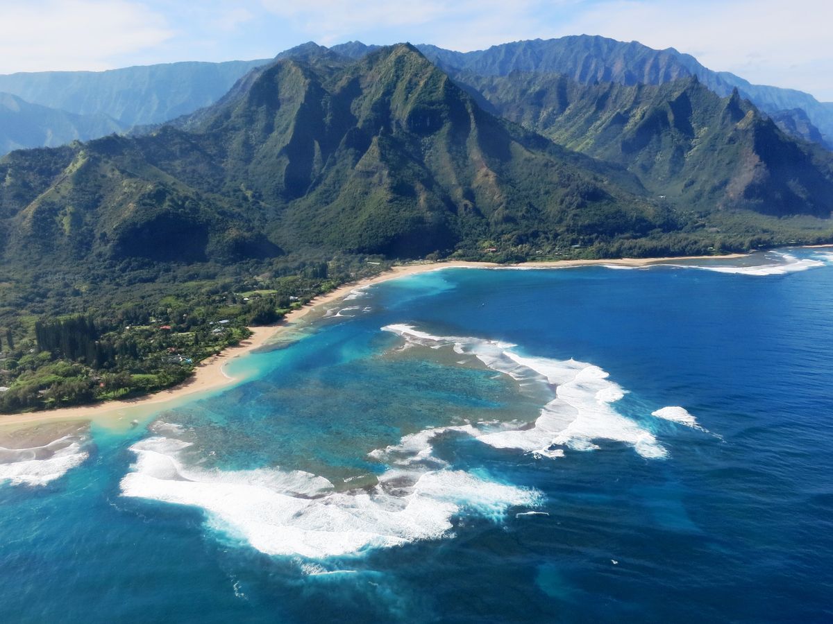 ナパリコーストは海岸線だけでなく、その奥にも絶壁が重なってその間をヘリが抜けて行きます。映画のシーンの中にいるような数十分でお値段以上に価値のあるツアーでした!