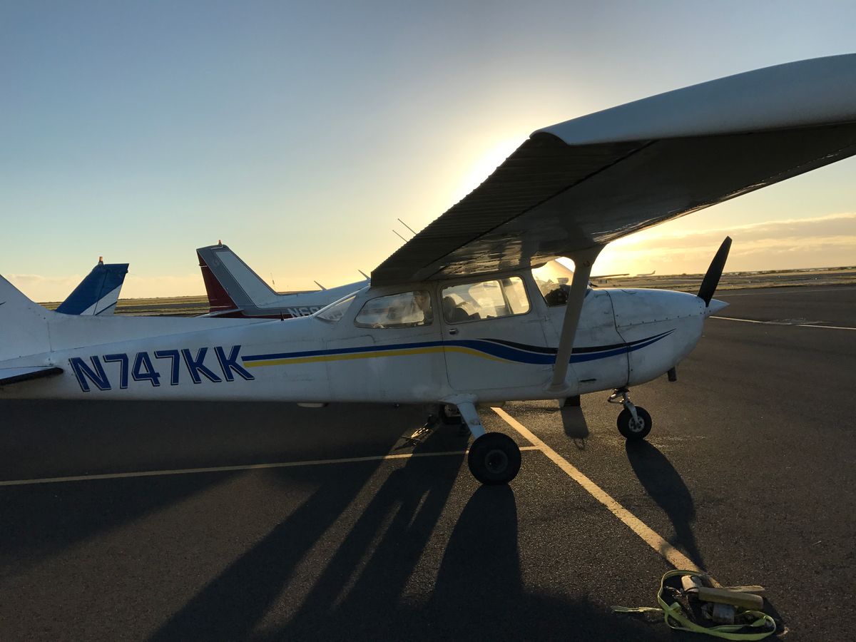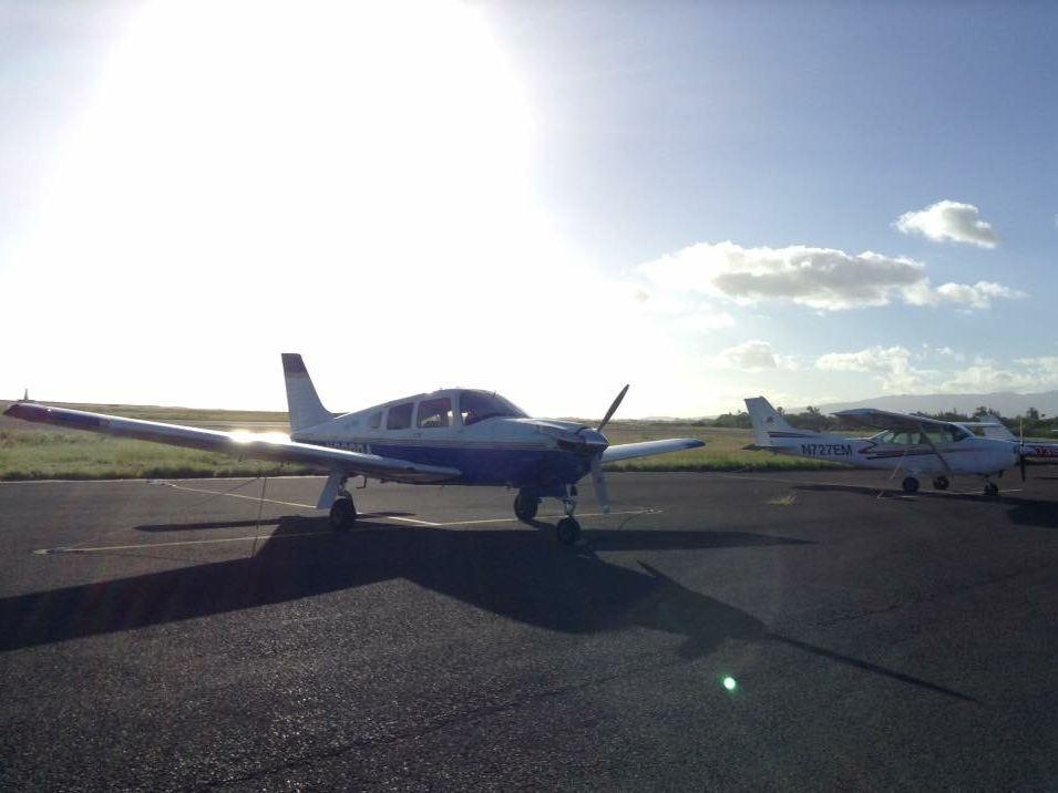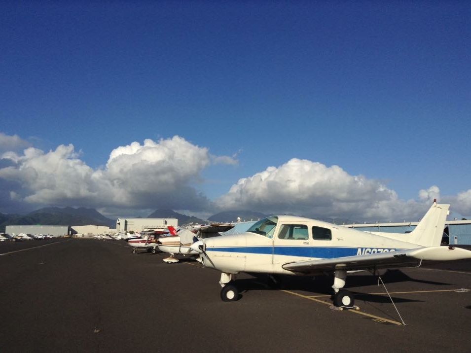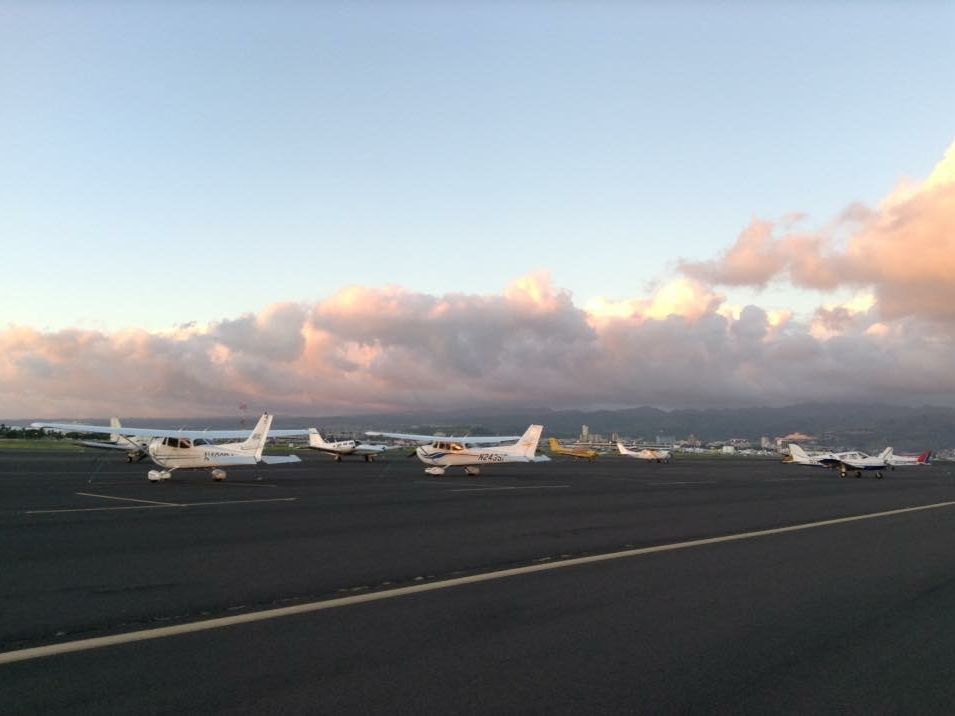 ホノルル空港のセスナがたくさん停まっているエリアに入っていき、自分が乗るセスナをパイロットと係りの人が点検してくれるところから始まりました。
