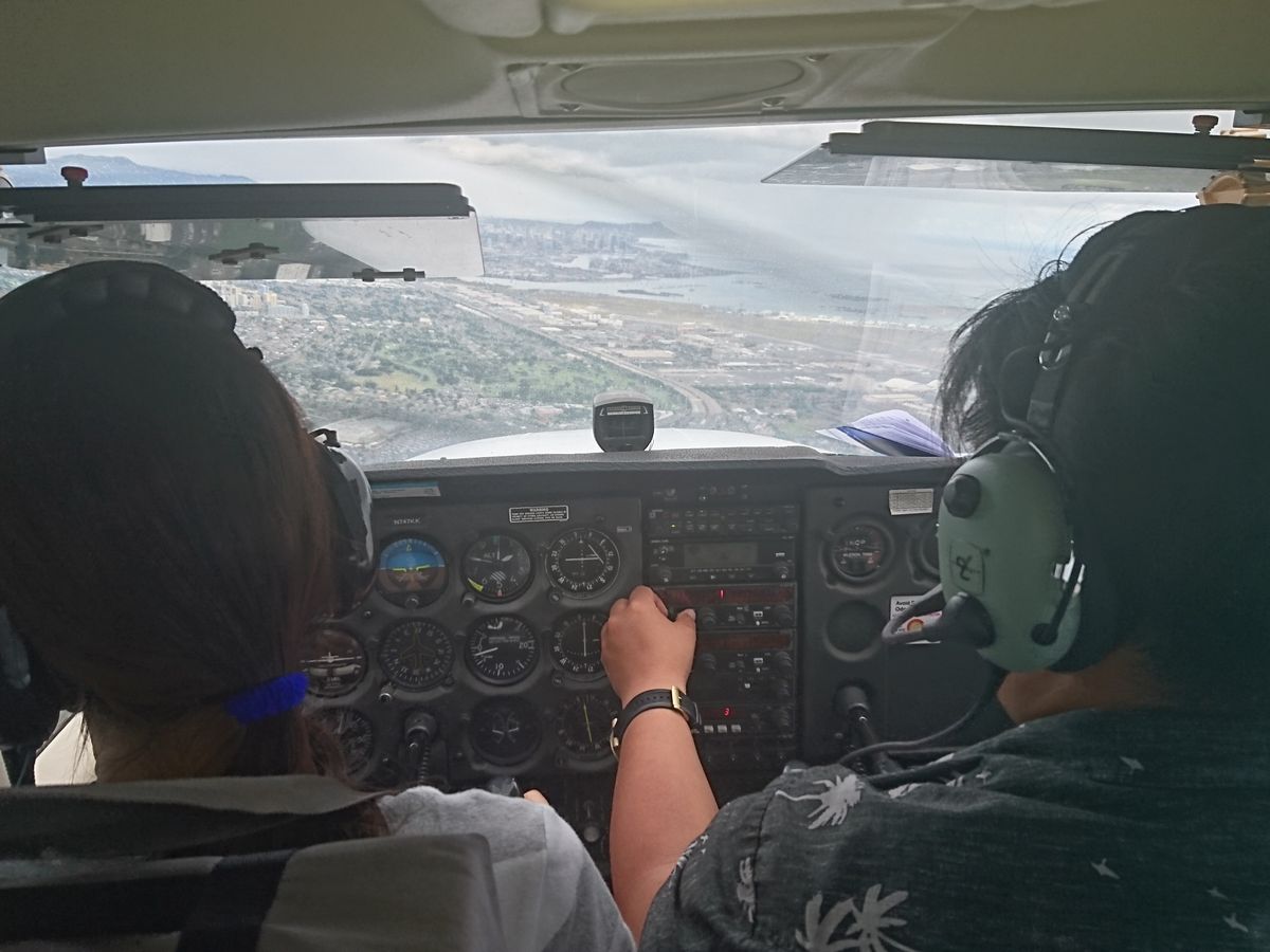 ホノルル空港から別の空港まで飛んで、そこで操縦席と後部座席の人がチェンジして、またホノルル空港まで戻ります。