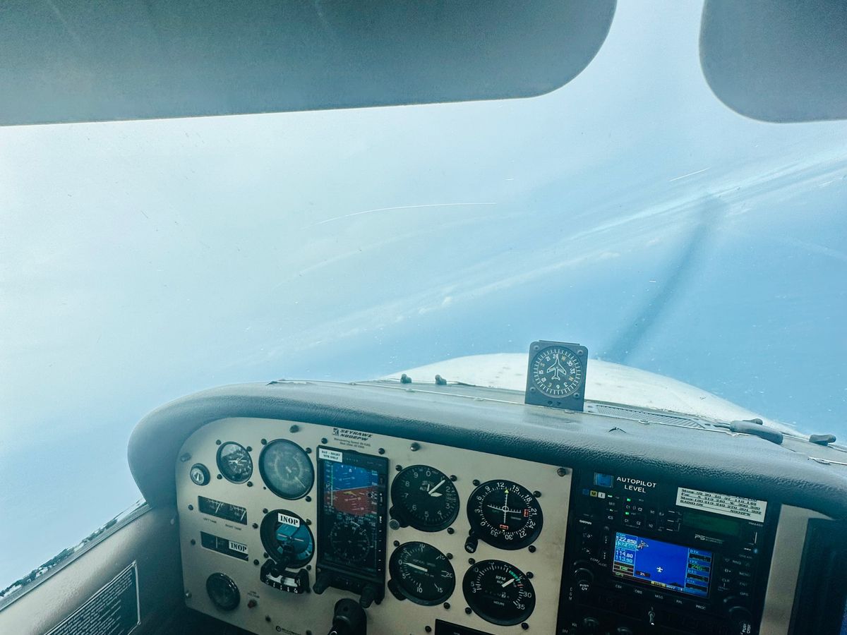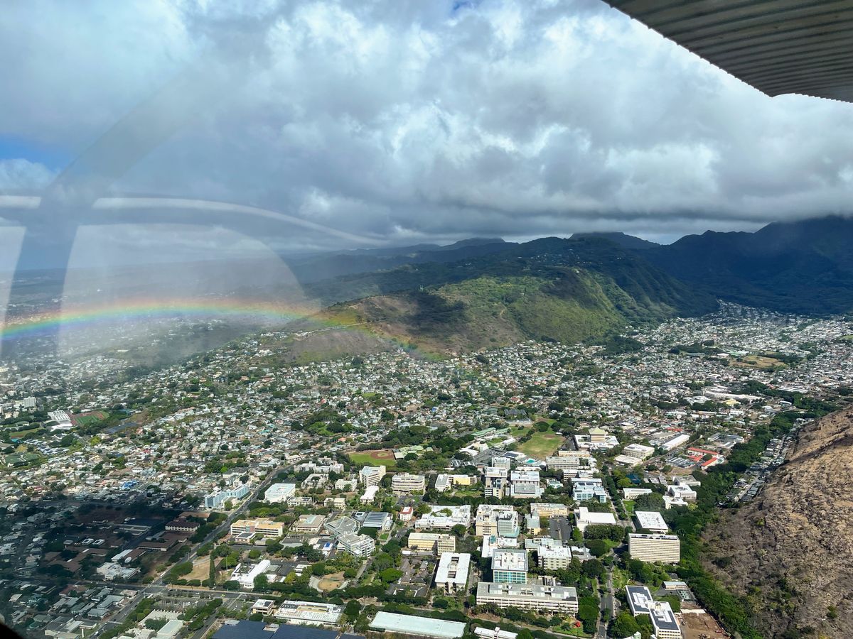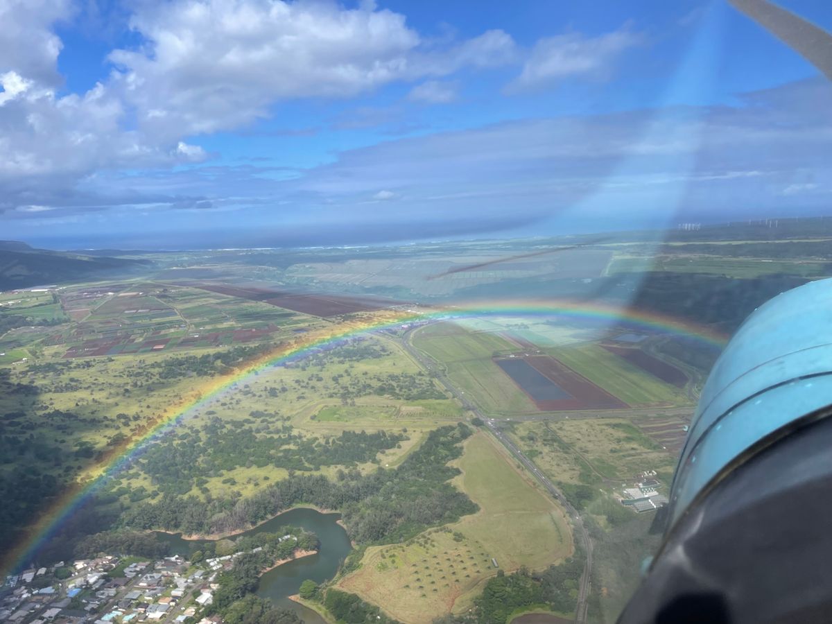セスナに乗るのは初めてで、旅客機と違って揺れることは想像していたが、こんなにも揺れるのかと想像以上だった。酔いやすい人は酔い止めを飲んでおいた方がいい。朝10時からのフライトだったが、雲の影響でしばらく待たされた。なので、フライトのあとの予定は極力入れない方がリラックスして待てる。交代してのフライトだったが、雲と風の影響で、東西の景色は楽しめず、片方のみを2往復する形のフライトとなったが、景色より経験を重視だったので特に問題なかった。虹を上から眺めることもできて感動した。