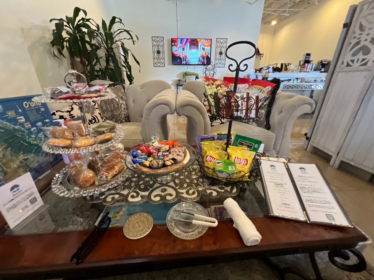 事務所に帰ると、新鮮なジュースとお菓子がたくさん用意されていました。