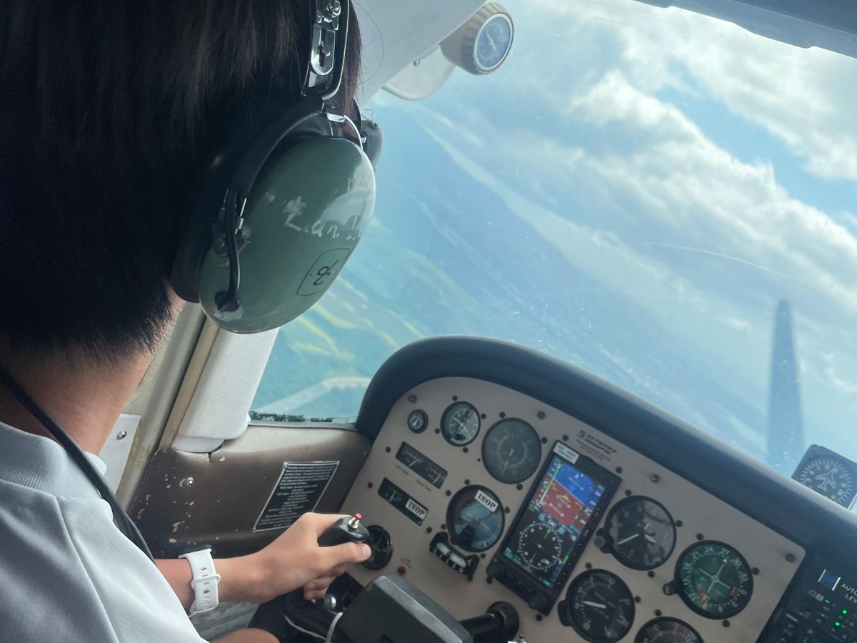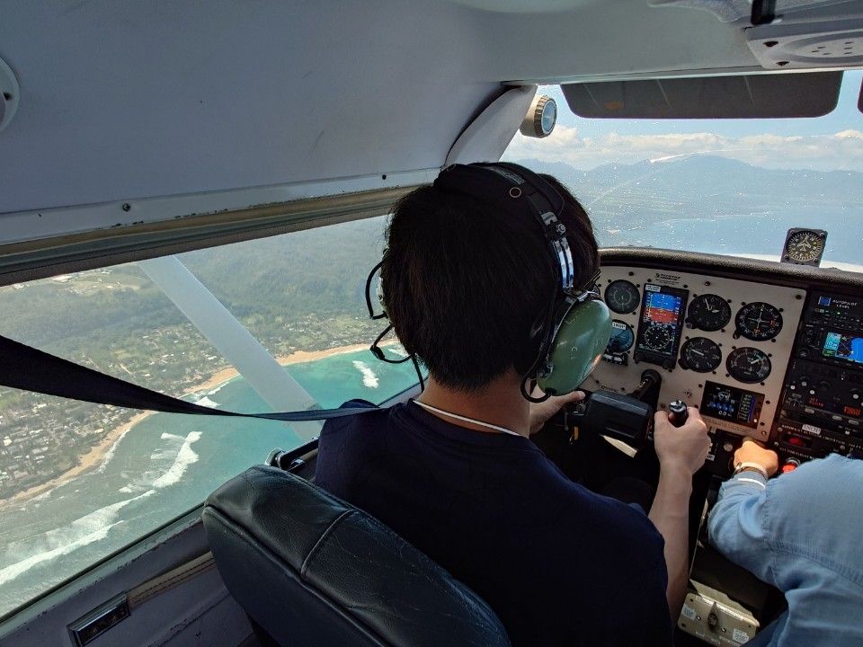 娘の高校の卒業旅行で行ったハワイで、セスナの操縦体験をさせました。