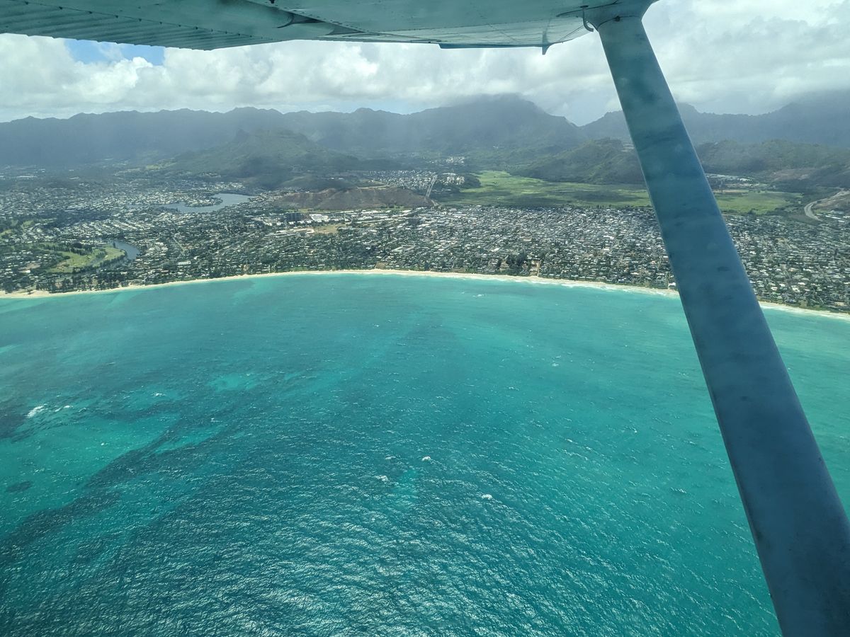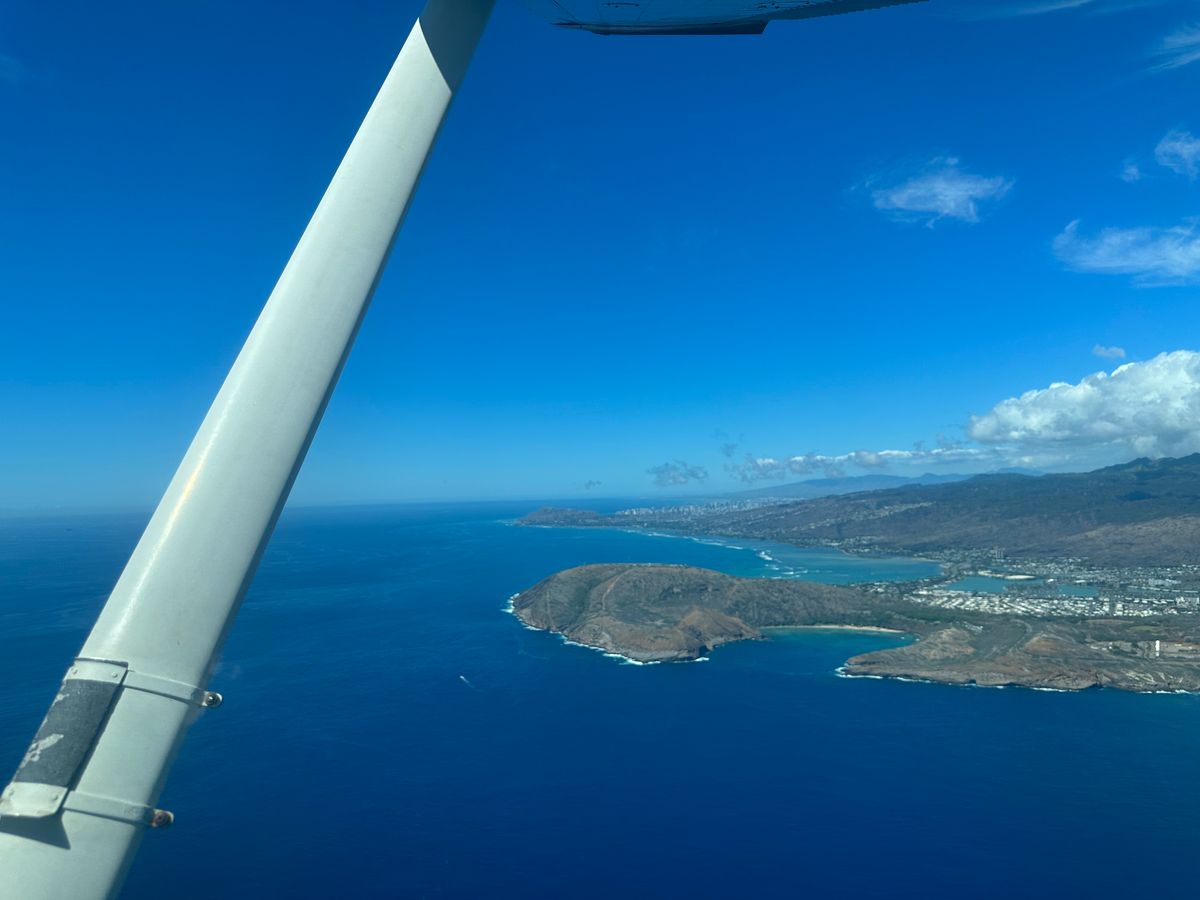 最初はやはりセスナに乗るのは不安がありましたが離陸して空から下を見ているととても気持ちがよくて良かったですね パイロットさんもビックリ女性で日本語まで話せて最高なセスナ初体験でした。3年後に又ハワイ旅行の予定があるので是非また乗りたいです それと行き帰りの送迎ではオーナー様の楽しい関西トークも楽しくて妻と話がとても盛り上がっていました