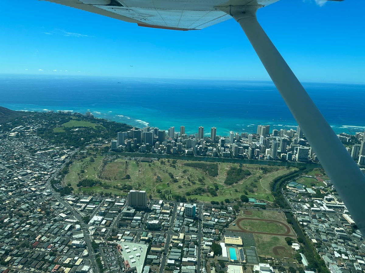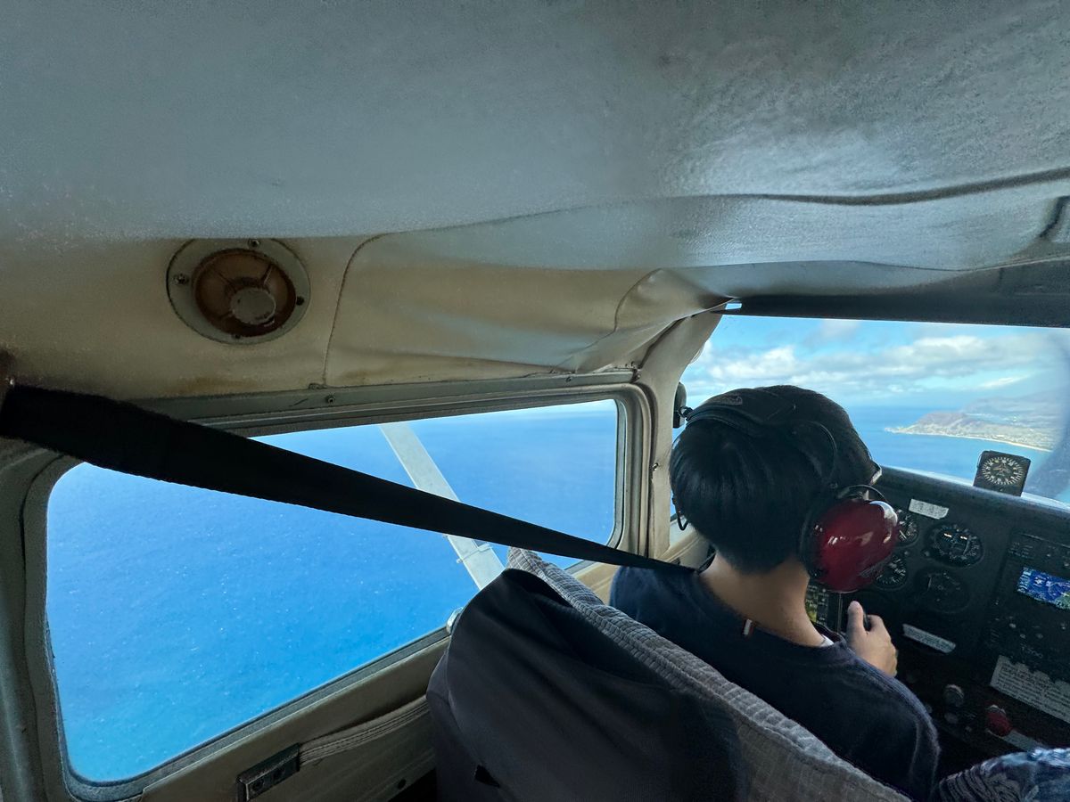 遊覧飛行と迷いましたが、操縦に憧れがあった亡き祖父が数十年前にオアフ島でライセンス取得した思い出から、操縦体験をしたい!と申込みました。