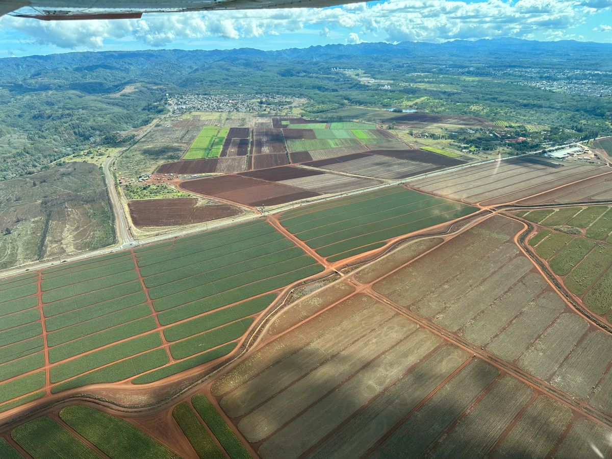 教官パイロットの方による複雑な管制空域の飛行指南と無線交信により、ワイキキ上空を経て到達したオアフ島東海岸。その黄昏に染まる姿は神々しさを感じさせられものでした。東海岸もしくは西海岸を飛行するかは教官パイロットの方の判断となりますが、東海岸をフライトすると観光名所クアロア牧場の谷間を奥まで空から見渡すことが出来ます。これぞ空を征く者に許された特典だと思います。私の操縦する飛行機に乗ったのは二回目となる妻も飛行中、安心して楽しんでもらうことが出来ました。