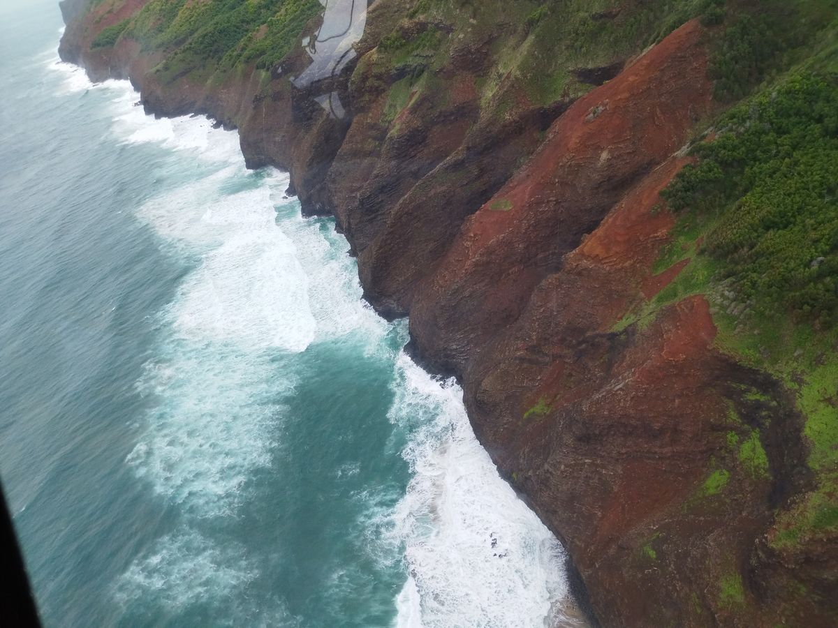天気がイマイチで山は雲で隠れていました。最初はまだ雲はなくナ・パリ・コーストまでは良かったです。