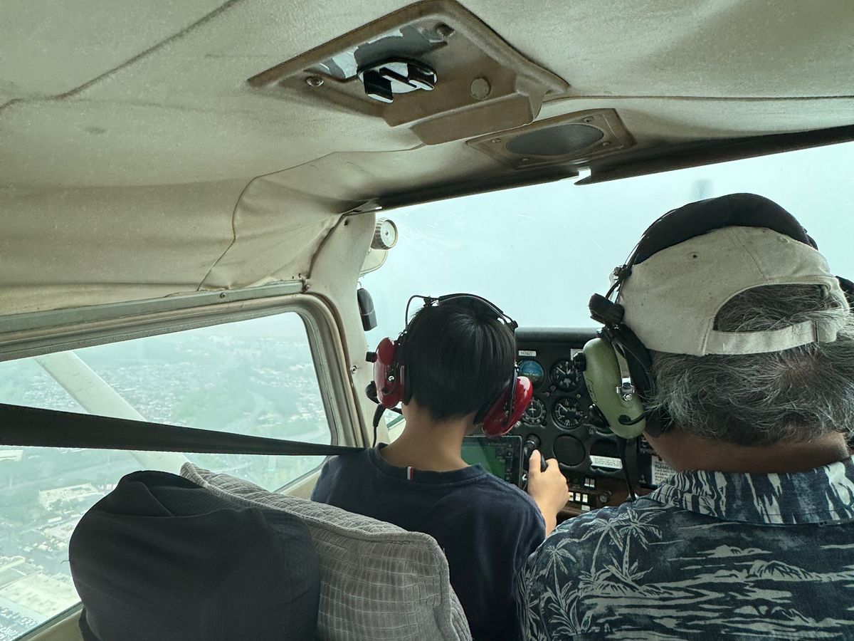 初めてセスナ体験操縦してみましたが、離陸・着陸時以外ほとんどの時間を操縦することができとても楽しかった!