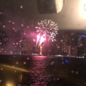 小雨が降ったりで、天候が少し不安定でしたが、クルーズが始まるとお天気になり、花火も上がり、おまけに、虹まで見えました。