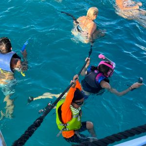 とても風の強い日でしたが、クルーは人々の乗降を素晴らしく行っていました。船はきれいで、飲み物はまあまあでしたが、ほとんどの人は礼儀正しく、話すのが楽しかったです。若者の結婚式のパーティーがクルーズを共有していて、全体的には良かったのですが、一人の女の子が多くの注目を必要としているように感じていました。彼女がカタマランの前で行ったリスキーなダンスや動きで水に落ちないかと驚きました。私が彼女にお願いできるなら、誰かが怪我をする前に落ち着くように言ったでしょう。