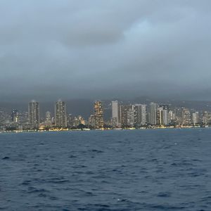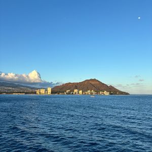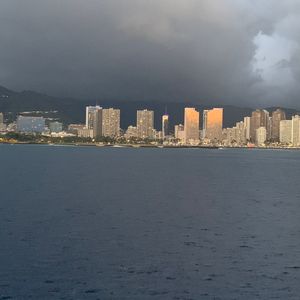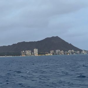 乗船自体は本当に楽しかったです!カタマランに乗るのは初めてでしたが、期待を裏切ることはありませんでした!クルーズ中、ホノルルのスカイラインに温かい色合いを投げかける夕日の息を呑むような景色を楽しむことができ、背景にはダイヤモンドヘッドの象徴的なシルエットがありました。私たちは停泊して海に飛び込むこともできました。