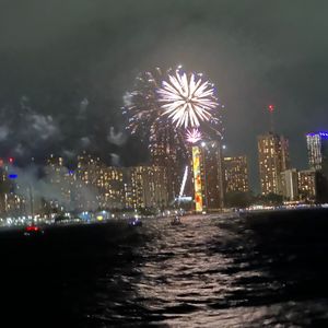 ワイキキの街とともに見る花火は、洋上からしか味わえない最高のものでした。
