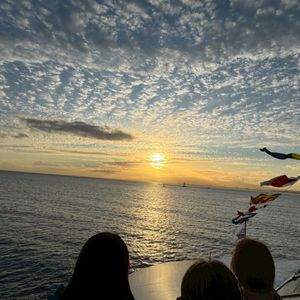 このクルーズは素晴らしかったです!クルーは礼儀正しく、気配りがありました。ディナーも素晴らしかったです!生演奏があり、曲の合間に島の歴史を少し教えてくれる人もいました。これは誰にでもお勧めしたいです。また、スピナードルフィンが私たちのために少しショーを見せてくれる幸運にも恵まれました。飛び魚も見ました。全体的に、素晴らしい体験でした!