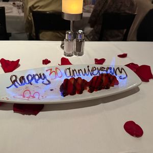 最後に30周年記念と書かれたお皿にイチゴとチョコにブランデーをかけてフランベしたデザートを持ってきていただき感激しました。ありがとうございます。