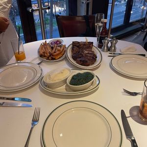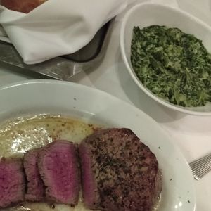ルースズクリスは2回目の訪問でした。前回トマホークステーキをいただきましたが、今回私はフィレミニョン、夫はプチフィレとシュリンプを選択、サラダとスープ1つづつ、前菜はマッシュルームのクラブミート詰め、サイドがライス、クリームスピナッチ、マッシュポテトから選べたと思います。パンはサービスで付いていて、パンに塗るホイップバターが美味しかったです。