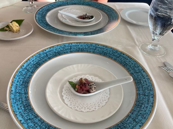 小雨の中、屋根なしでのテーブル、移動にも大変に意思疎通が必要のようで大変でした。出されたコースはそれなりに満足でしたが、ウニの評価は、カハラホテルのほうが高いように個人的には思います。