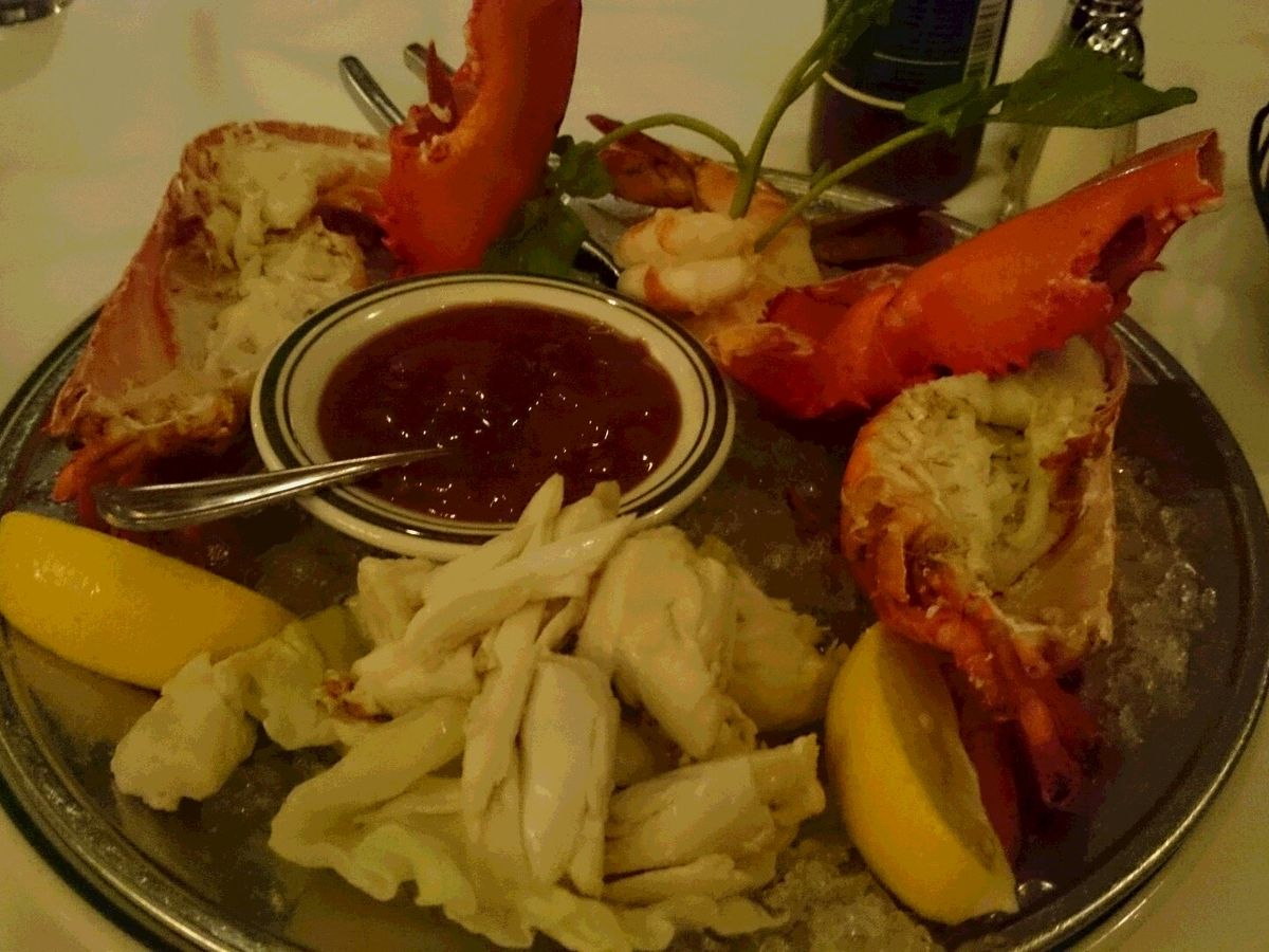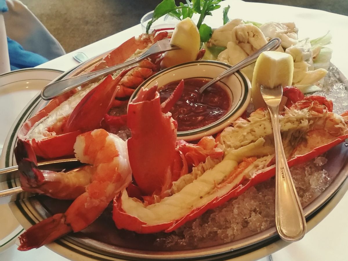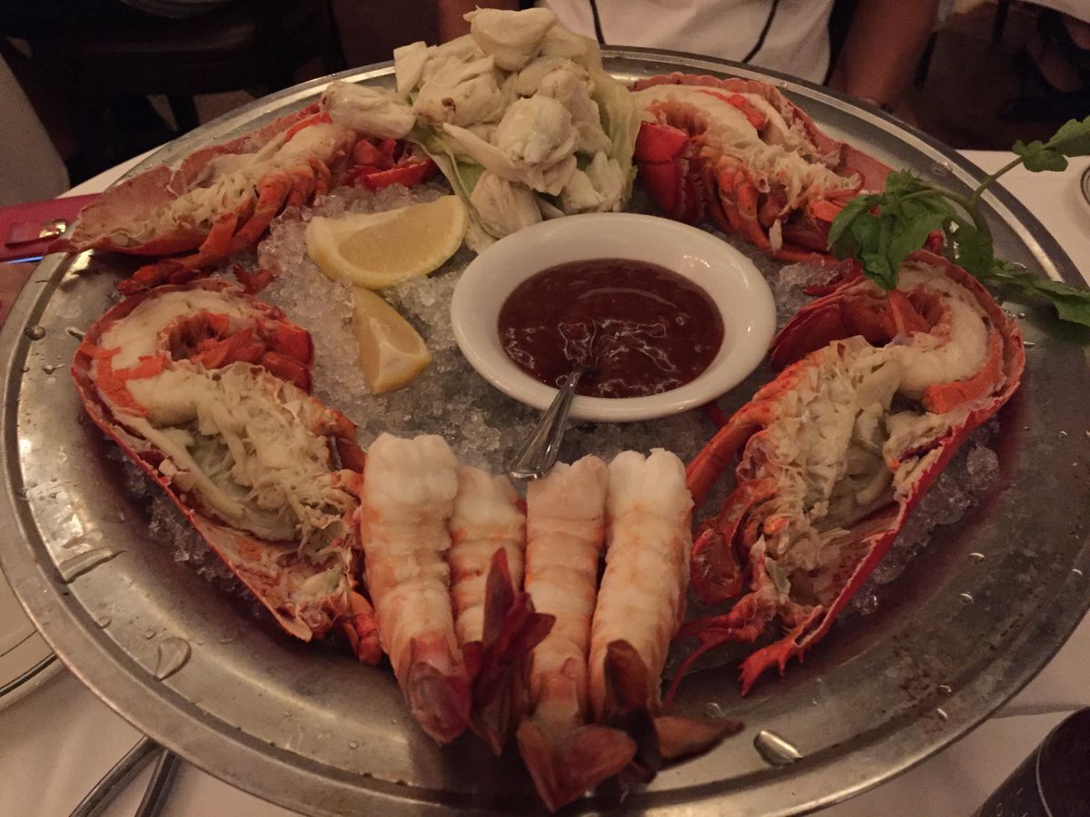 コースはシーフードの盛り合わせから始まり。カニ、海老、ロブスターとガッツリ。