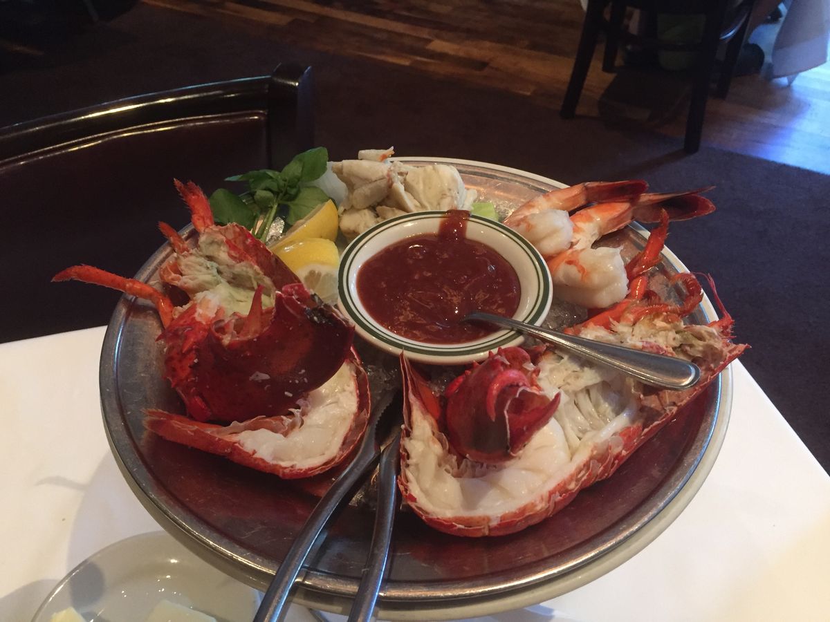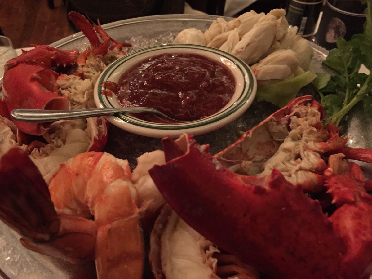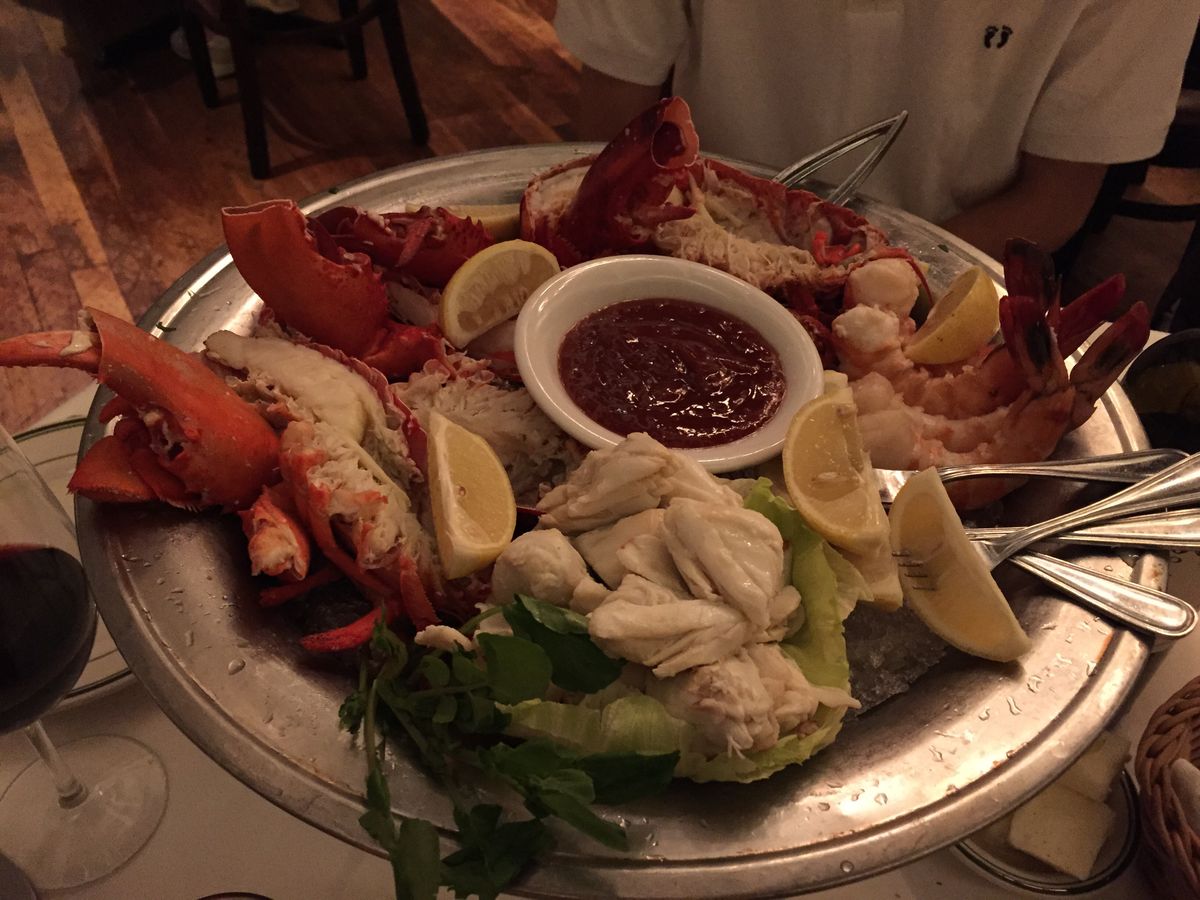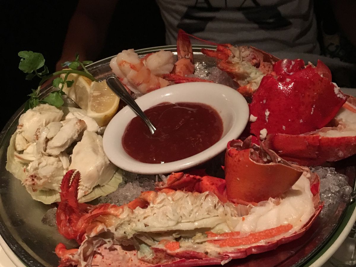 コースはシーフードの盛り合わせから始まり。カニ、海老、ロブスターとガッツリ。