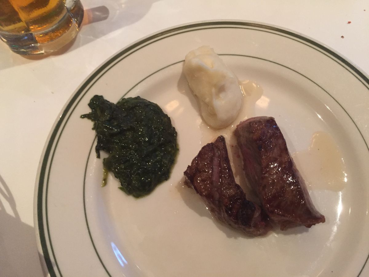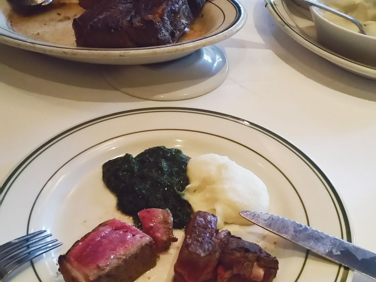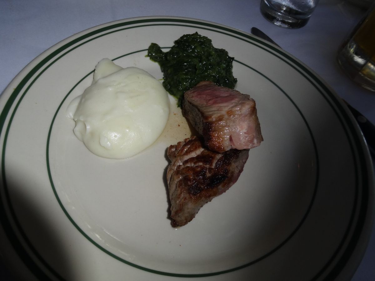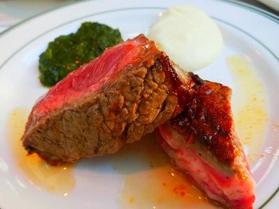 お肉はお店の方にミディアムレアを薦められ、とても柔らかくてとても美味しかったですが、赤いのが苦手な方はもう少し焼いてもらった方がいいと思います。付け合わせのほうれん草とマッシュポテトが美味しくて感動しました。お店の方達もみなさん親切で楽しい方ばかりでした。