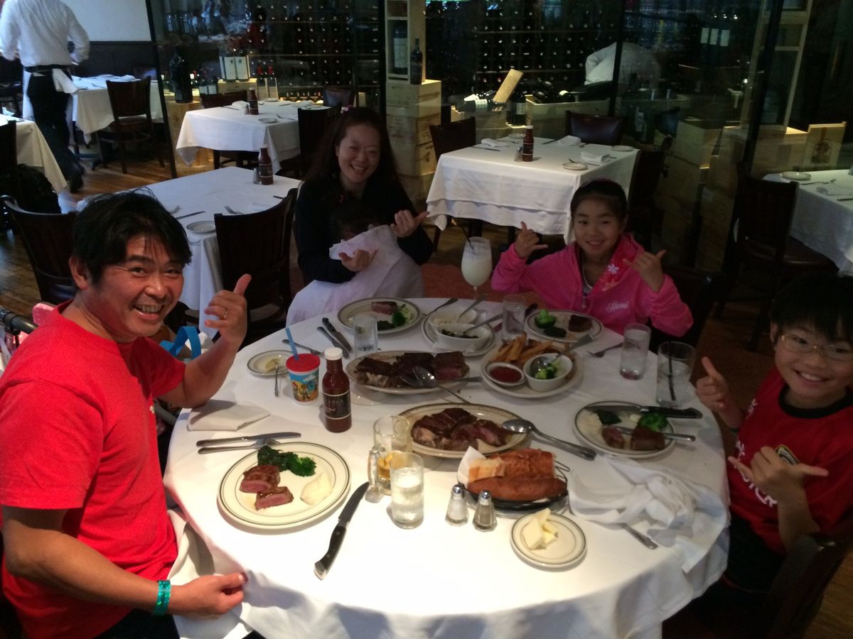 よくTV等で、取材されているだけあり、お味とボリュームは満点でしたが、隣に日本人の子連れグループがきてしまい、子供がフォーク&ナイフは落とすし、ガチャガチャお皿で遊び・・・親は注意せず、定員も日本語で子供にしゃべりかけ、わいわいされていたので、老舗??というよりは、高いコースだったのに、正直普通のステーキハウスかという雰囲気で、味を1度知れば、わざわざ次は行かないかなと思いました。記念日などで、楽しまれるのであれば、子連れグループで騒がれたら、ちょっとガッカリするんではないでしょうか。味は美味しかったですが、ちょっと高すぎかと思ったので、次回は行かないです。