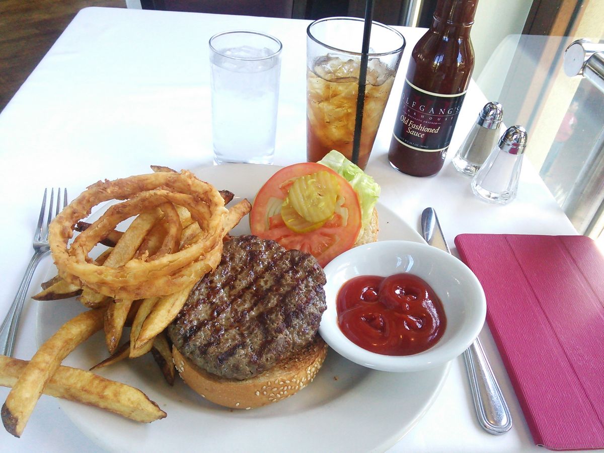 以前、ディナーで、ステーキをいただきました。お肉はもちろんですが、前菜もデザートもとても美味しかったです。今回は、お手頃価格のランチに挑戦しました。ハンバーグは、ジューシーで、さすがウルフギャングという感じでした。料金には、飲み物もチップも含まれているので、安心でお得感がありました。ハンバーグのお店はたくさんありますが、場所も行きやすいので、一度ご賞味ください。お勧めです。