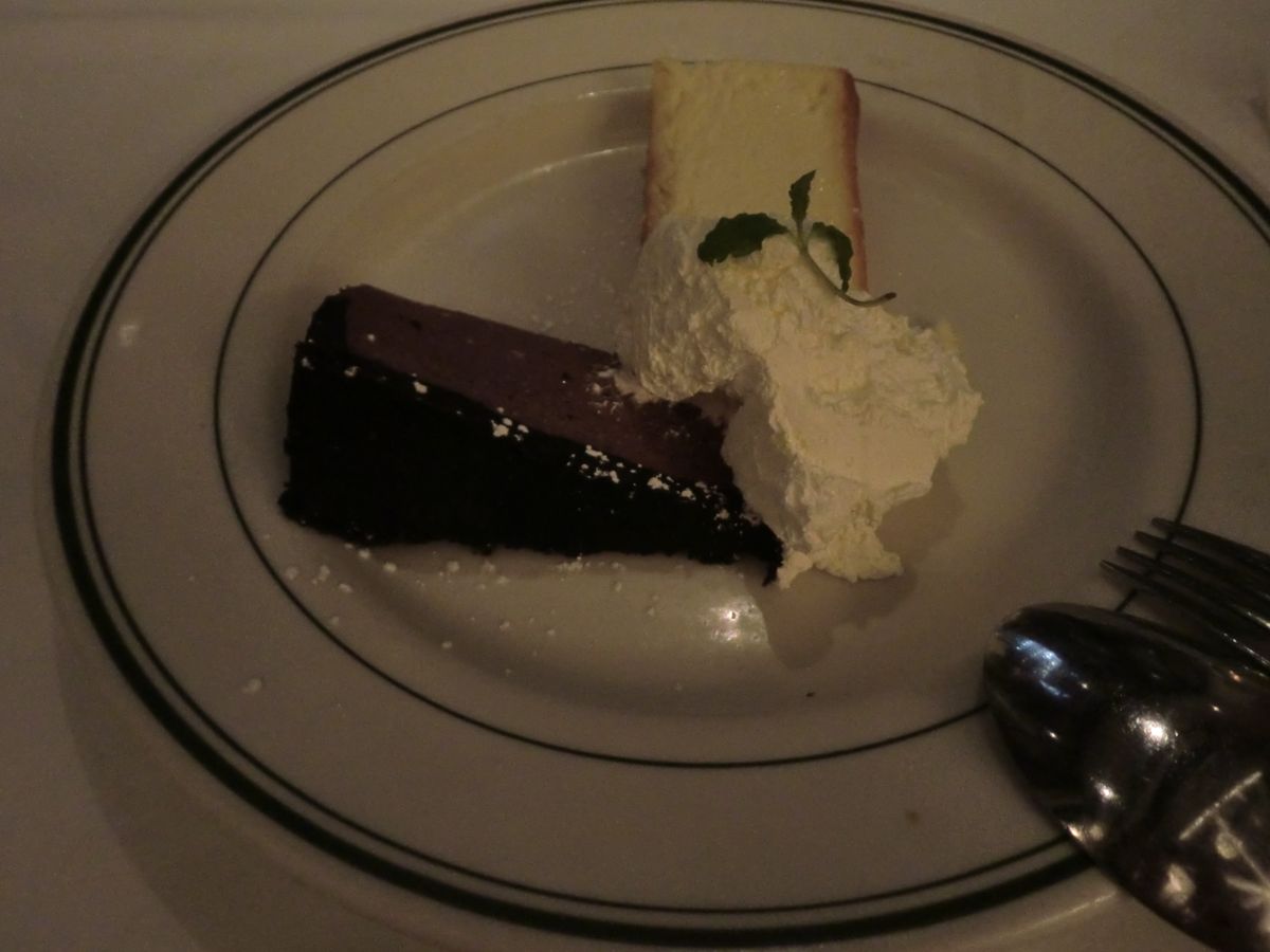 食後のデザートはチーズケーキとチョコムースケーキでしたが、こちらは甘すぎて少ししんどかったです。