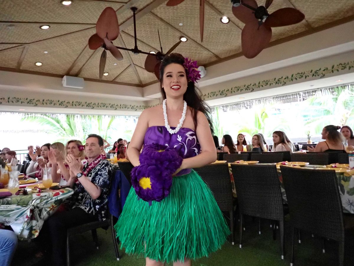 出演者の女性が優しくエスコートしてくださり、2歳の子どもも、とても楽しんでいました。最後には懐いて、別れるのが寂しそうなくらいでした。バックステージツアーは興味深く、その後のフラダンスショーで使われる小道具など、こんなふうになってるんだとわかって面白かったです。食事も美味しく、ショーは席の良い位置だったため、とても楽しめました。ハワイ楽しい!と思えるショーなので、ハワイ初心者にはお勧めしたいツアーです。
