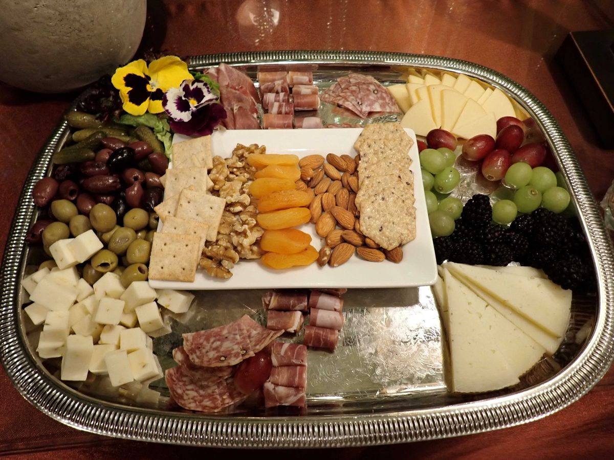 グリーンルームではシャンパンとおつまみを楽しめました。おつまみはハム、サラミ、チーズ、オリーブなど種類豊富で嬉しかったです。