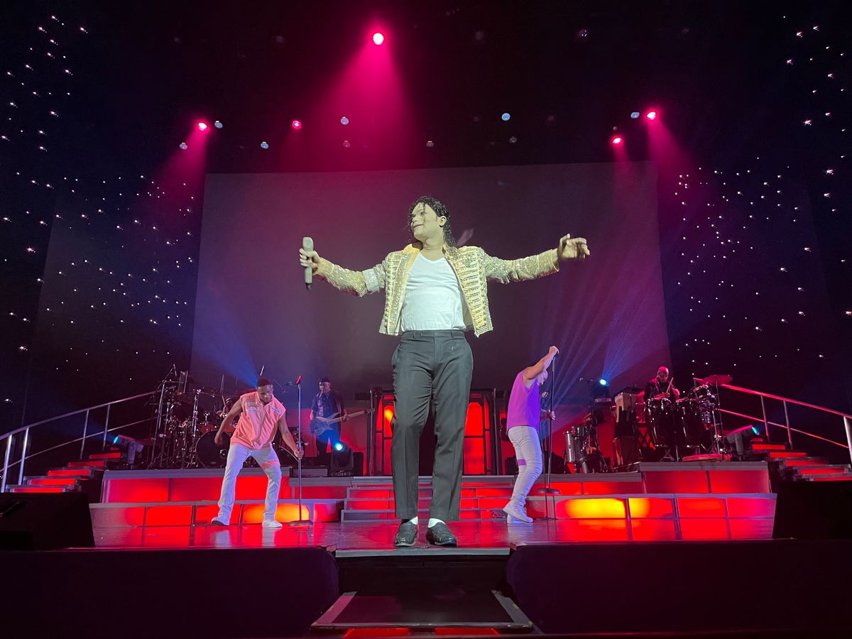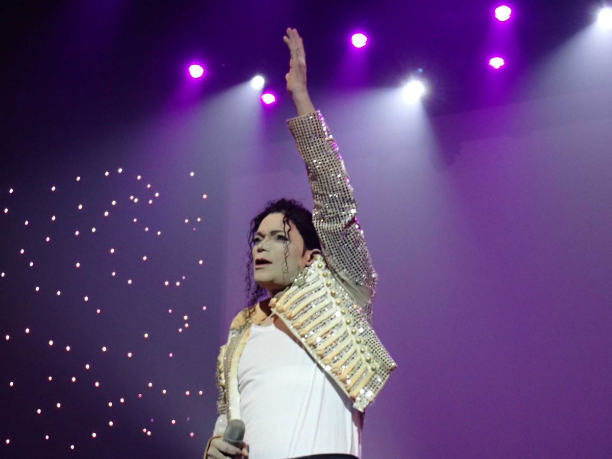 バックステージツアー終了後専用の席に(同じ席で通路から2番目の列)着くと、我々専用の係のお姉さんがついて自己紹介してくれた。食事は全員会場(写真6)の外で全員同じもの(ビッフェ)で取りに行く順番が一番早かった。席に英語と日本語のショーの進行日程、食事内容を書いた物が置いてあった。韓国語のQRコード(写真7)だけれども読み取って日本語に変換すれば内容が分かります。飲み物2杯だけは係の人が持ってきてくれる。他のプランは最初からマイタイが置いてあった。当日のVIP10名日本人2組4名アメリカ人3組6名参加、私たちは最初に注文していたもの(ノンアルコール、バージンと言った方が伝わるらしい)マイタイがきた(バージンマイタイは上にプリメリアの花添え、アルコール入りは上の方が色が濃いこげ茶色でパイナップル添え)、2杯目はノーアイスのレモンライムとパイナップルジュースを注文したが来たのには氷が入っていたので辛抱しようかと思ったが係の人に言ったらマイミステイクと言って氷なしに作り替えてくれた。氷なしだと量が少なめだろうと思っていたら、コップいっぱい入っていた。びっくり。ドリンク2杯以外にたのべば水(やけに小さい入れ物)も持ってきてくれた。この段階で席に着いている人がかなりいたが、食事をとるのは我々が一番、二列に同じ食事が並んでおり、4方向から取ることが出来た。離れた奥にカービングステーションがあり、カルアイポーク?豚丸ごと一匹やいたもの、肉を取り分けてくれた。食後のデザートは小さいお皿イチゴは大きい、すいか、メロン、マンゴウ4分の一(これは甘くて美味しかった)、1㎝各の小さいケーキもあった。取り分けてくれ量が沢山で、おなか一杯になり食べきれなかった。食事中に頻繁に踊ってくれた、最後はフラレッスンで盛り上がった。 食後、最初にプルメリアのレイをかけてくれた案内の女性が最前列の席に誘導してくれた。劇場内は正面と両サイドに大画面のスクリーンがあり、ショウーの間連携した画像が映し出されていた。エルビス(写真8)は最前列、2番目の列までの観客全員と握手してくれた。さらに、エルビスは会場をめぐりながら自分の汗を故意に付けた赤い細長い布を10名ほどに配っていた。エルビスは太り気味で、マイケル(写真9)は会場には降りてこなかった。エルビスがマイケルより歌の数は多かった。ハワイの伝統的な食事に加えてフラあり、歌あり、エルビスプレスリー、マイケルジャクソン、フアイヤーダンス(写真10)まであり大変盛り上がった、こんな素晴らしいショーは他にありません。最後のグリーテイングは、トイレに行って遅くなったせいか?エルビスはいなかった。いたのは進行役兼歌手の女性(ハワイの女性歌手)、マイケル、タヒチアンの恰好の男性、フアイヤーダンスの男性だけだった。以前行った時ほど盛り上がっていなく、写真をとってくれる人もいなくて、妻と女性歌手、妻とマイケルの写真しか取れなかった。夫婦でマイケルと写真に収まりたかったが残念。前回は写真を撮ってくれる人がいて、エルビス、タヒチアンの恰好の女性もいて夫婦と出演者で写真がとれたのに残念。
