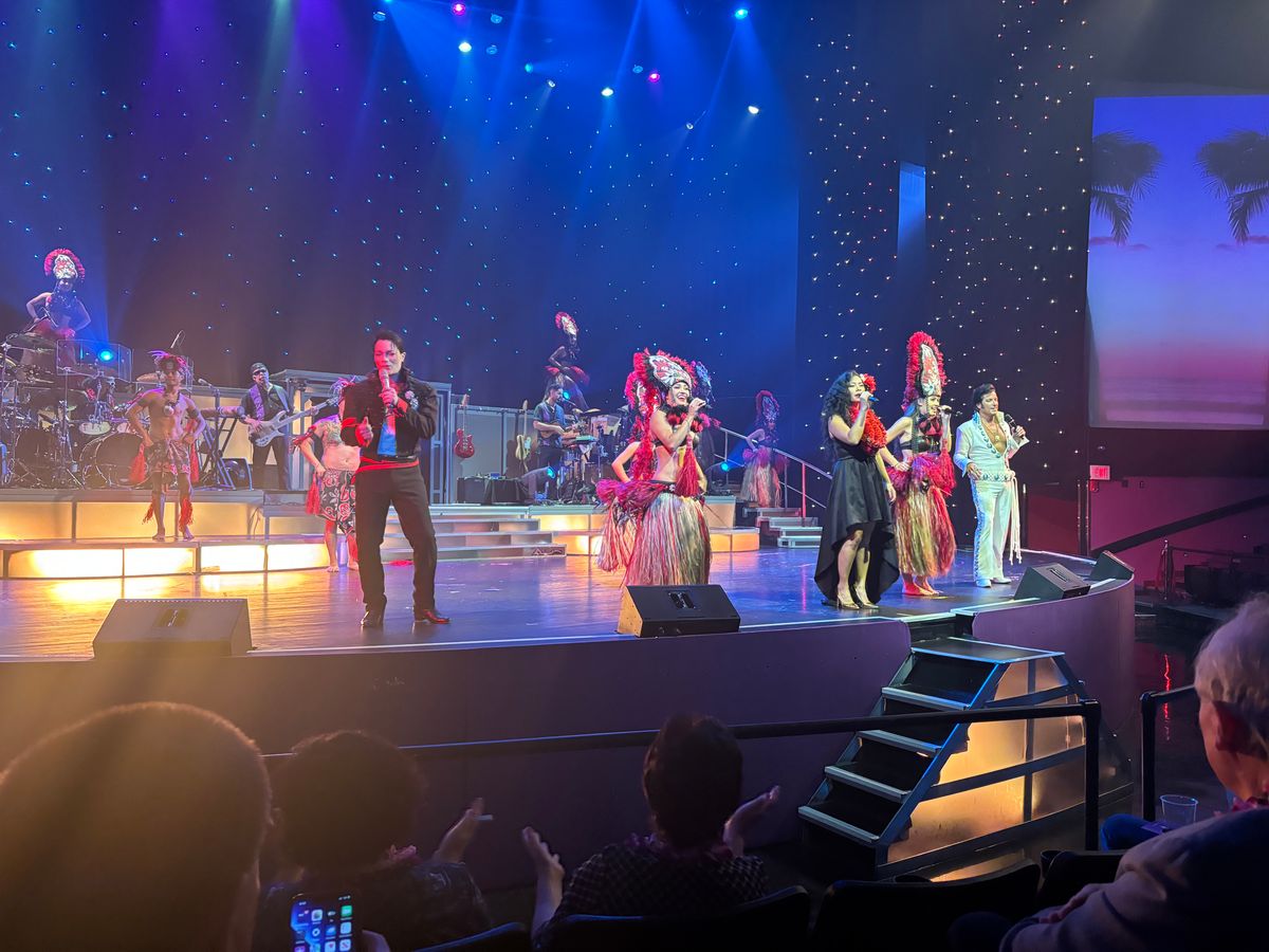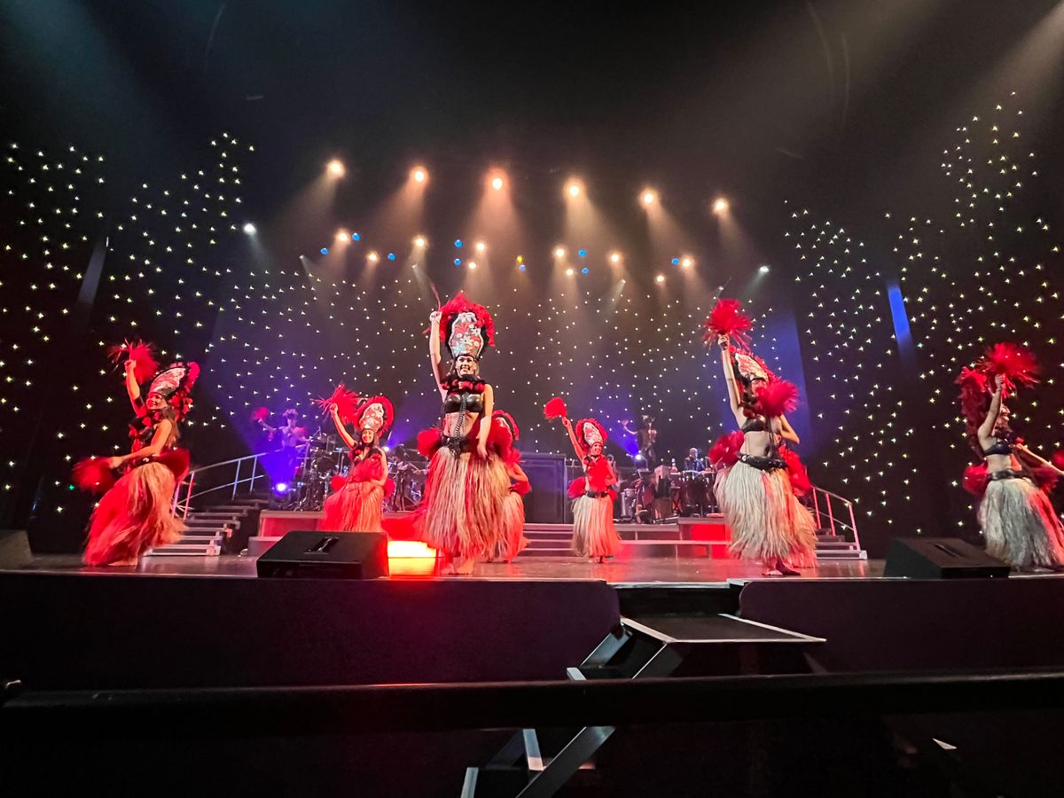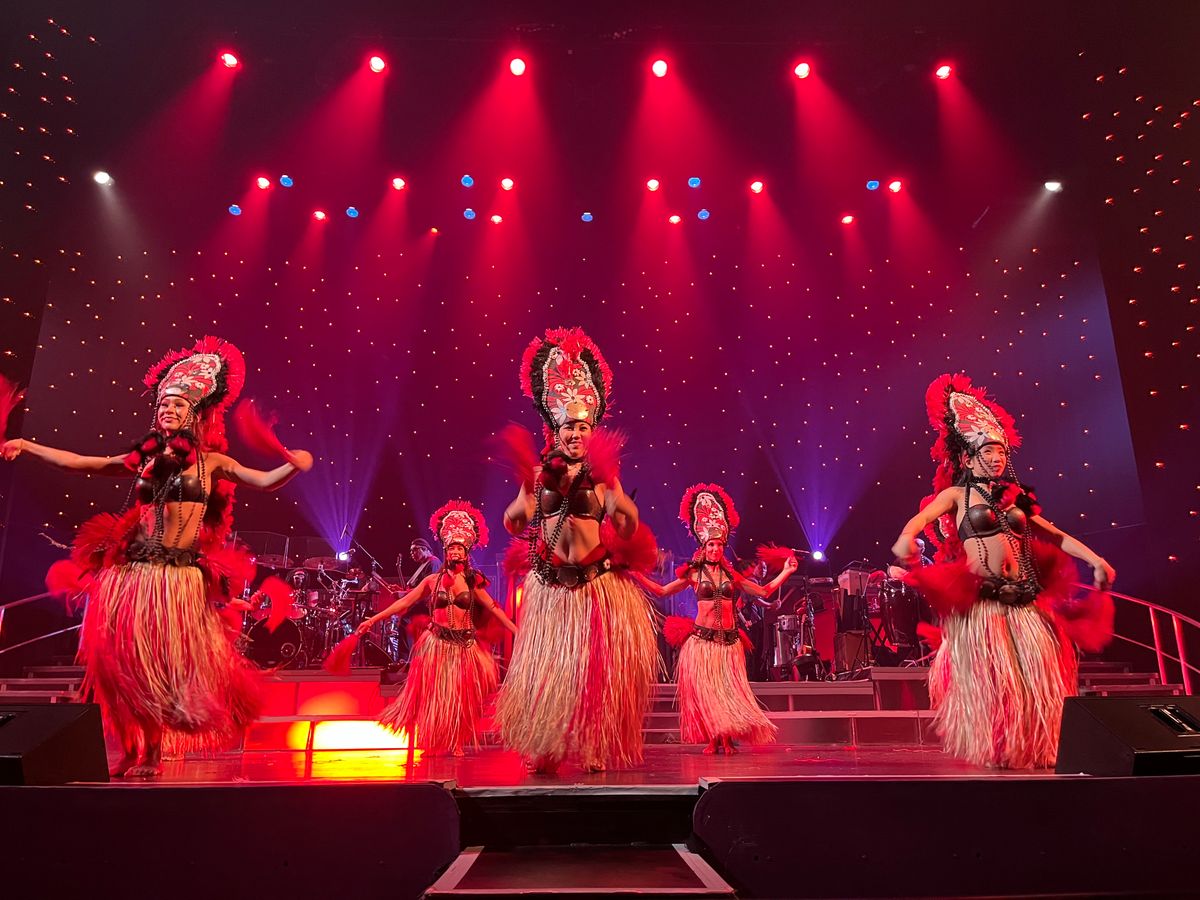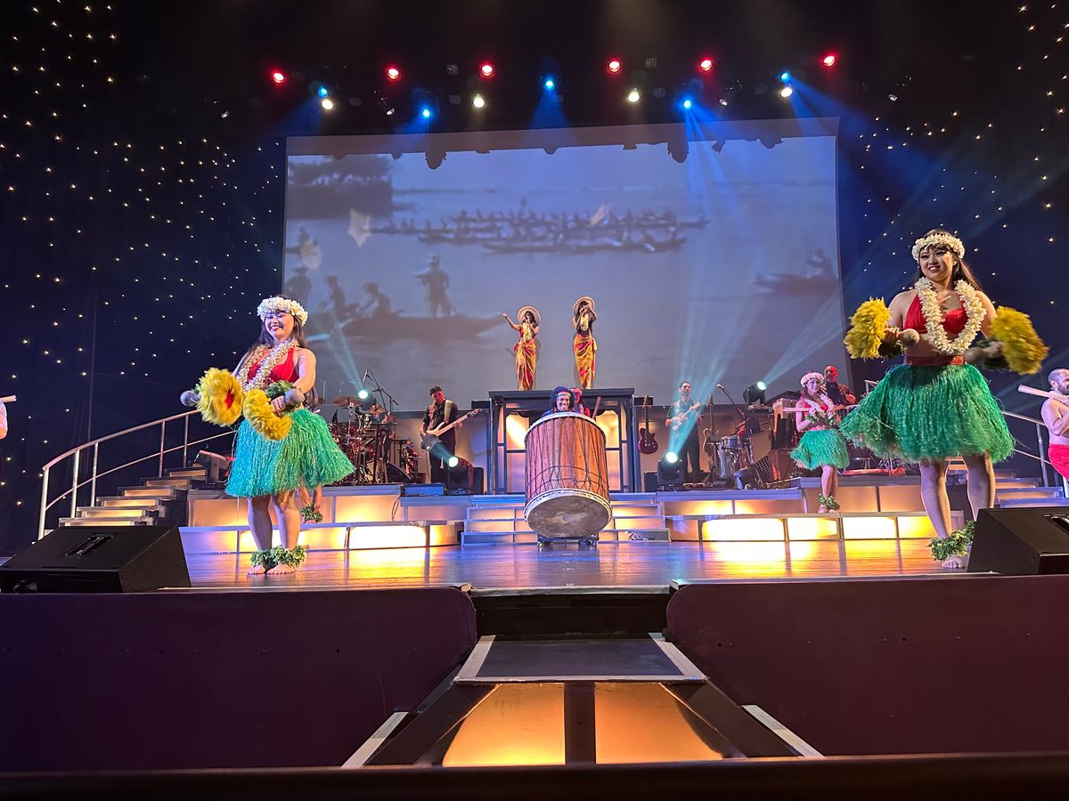 夕食会場からすぐのロイヤルハワイアンシアターに移動して、バーで貰ったお酒を片手にショーを楽しみました。