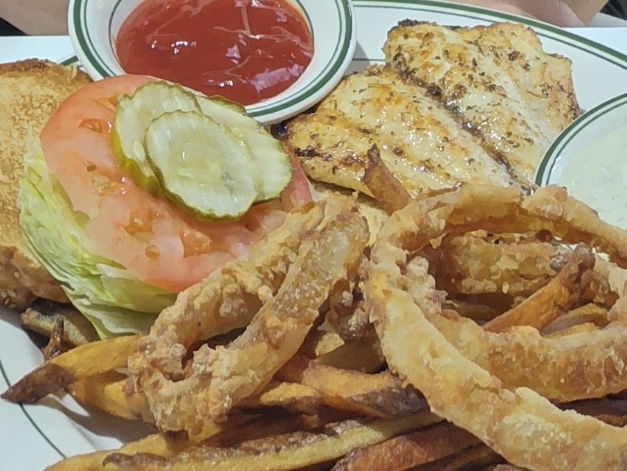 フィッシュサンドが来た時にはチキンかと思ってしまいました。私が想像してたのは魚フライのサンドでした。実際はグリルで焼いた感じのバーガーでした。