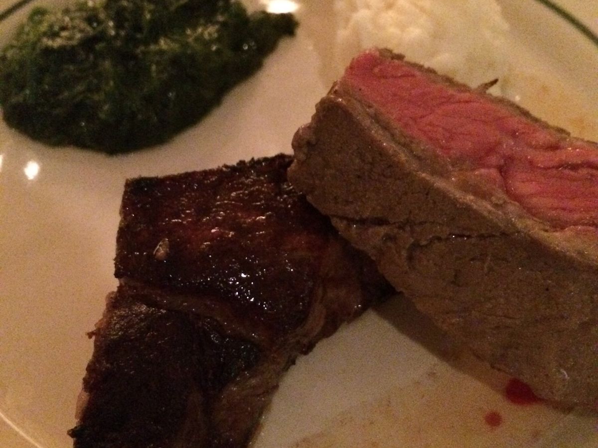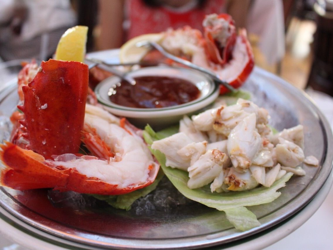 前菜のロブスター、むき身になった蟹とてもおいしく、ポーターハウスステーキもちょうど良い焼け具合おいしかったです。