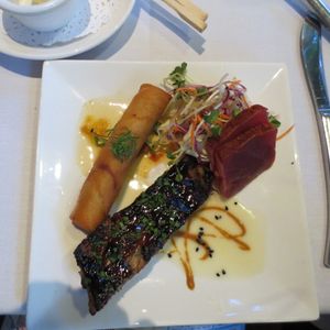 おいしいステーキが食べたいと申し込みました。マリオットのdkよりも明るい店内がよく、私たちは窓際の席でしたので風も心地よくよかったです。前菜のロブスターだったりシュリンプがあったのがよかったです。お肉も美味しくて堪能できました。またマッシュポテトとほうれん草のソテー?がものすごく美味しくて沢山頂きました。デザートはケーキより果物くらいでいいかなというかんじでした。