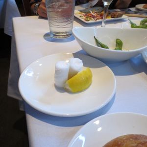 シーフードはロブスターなど手を使わないと食べれないモノでしたがフィンガーボウルがなかったため、お願いしたら熱いおしぼりを持ってきてくれました。