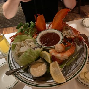 ロブスターやTボーンステーキ&マッシュポテトとほうれん草ペーストの付け合わせは噂通りのおいしさで、紹介されたライトな赤ワイン(別料金)との