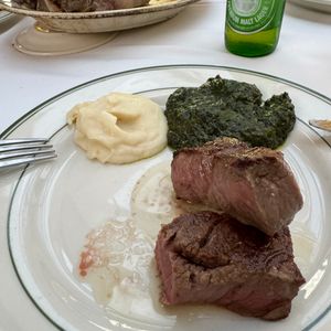 お肉も柔らかく、とても美味しかったです。付け合わせのお味も最高!お皿も温めてあって老舗を感じました。