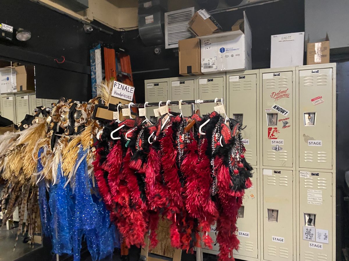 受付を済ませると、バックヤード見学の案内が始まりました。埼玉からお見えになった同年代のご夫婦と一緒に、ウエルカムドリンクでおつまみを食べながら、談笑していると、案内人のダンサー(後からショーで踊っていらしたのをみて、それとわかりました)の方が、いろいろとこのショーの舞台裏を説明してくださいました。ショーで使われる衣装や楽屋を見ながら、これから始まるショーにわくわくしました。