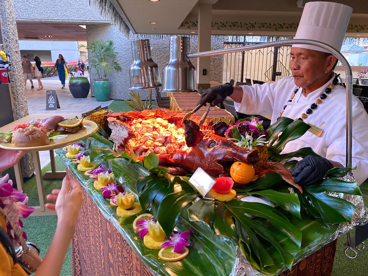 ルアウにはローストビーフや豚の丸焼きなどあり、大変おいしかったです。