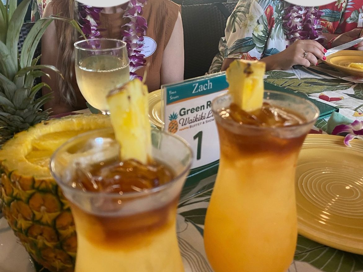 バックヤードツアーの後はビュッフェでしたが、ビュッフェも多くのゲストがいる中で最優先で案内いただき、超VIP待遇でした。ちなみにドリンクはツアー料金内でグリーンルームでのシャンパンと、ビュッフェの乾杯用マイタイ、食事中にもう一杯メニューの中から選ぶことができました。ハワイアン〜なトロピカルカクテルからワインまで豊富でした。