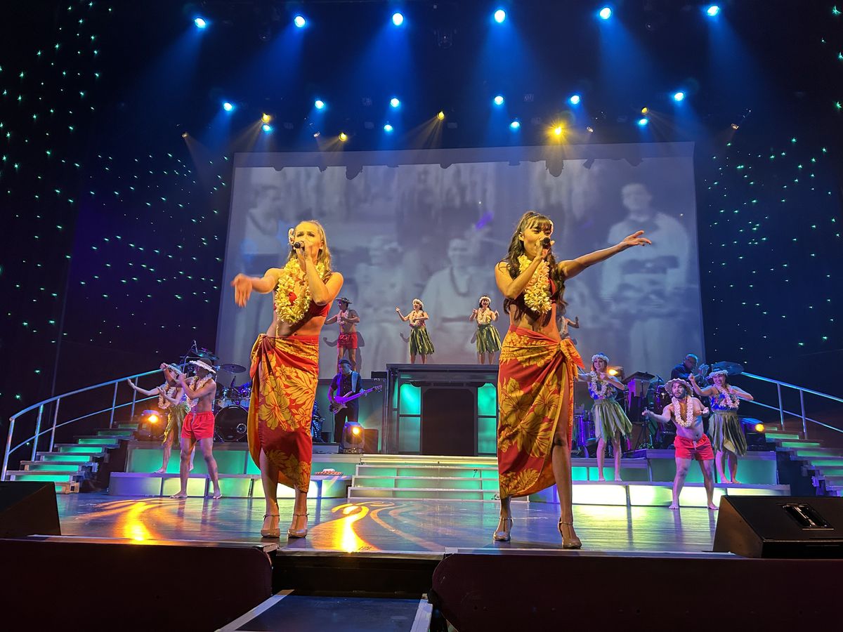 ショウは前半がハワイアンミュージックの歴史。ハワイアンミュージックを時代順にリズムが変わっていくのを懐かしい曲に乗せて聴くことが出来ました。ハワイアンの有名な歌手の紹介があって