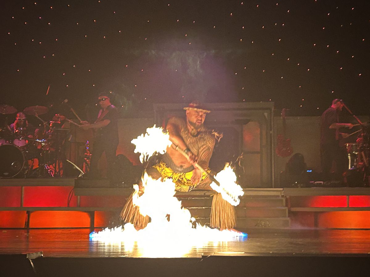 メインのロック・ア・フラショーではフラダンサーによるフラはもちろん、ファイヤーショーにロックスターショーなど1時間程度でしたが最後まで楽しく盛り上がるようなショーでした。グリーンルームツアーだったため、座席も最前列をご用意いただき、ロックスター達のファンサも神対応でした。