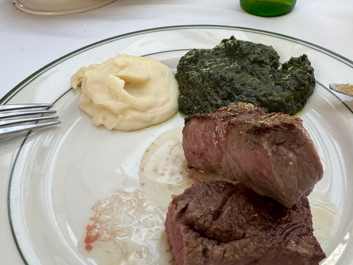 お肉も柔らかく、とても美味しかったです。付け合わせのお味も最高!お皿も温めてあって老舗を感じました。