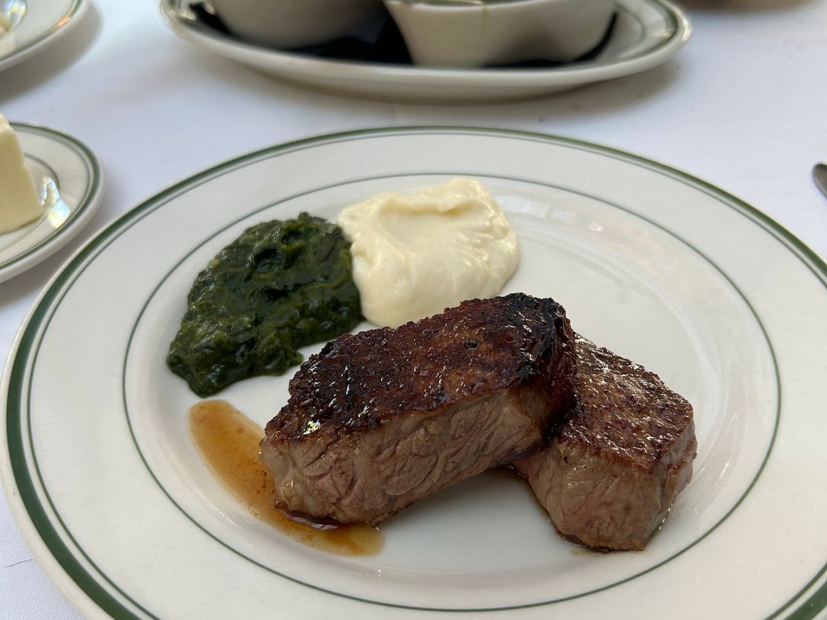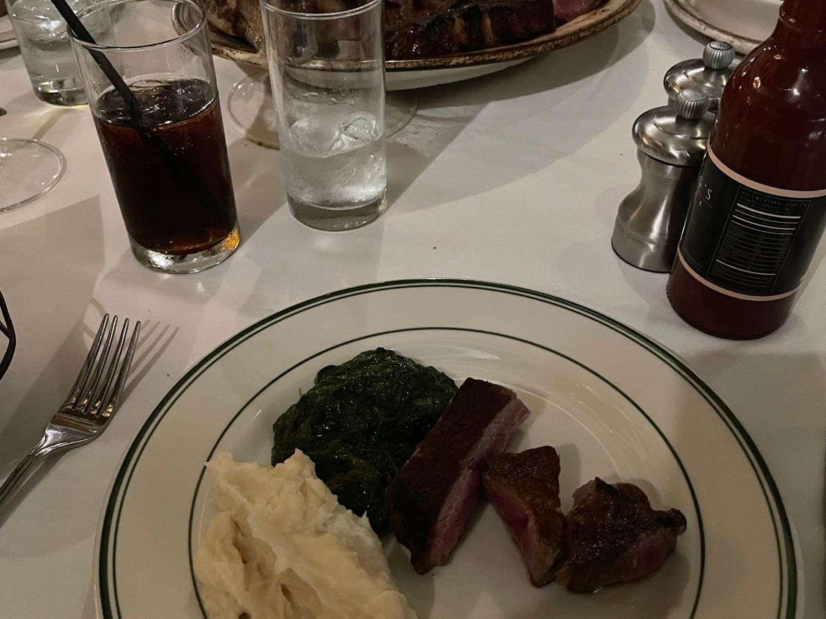 そしてメインのお肉!…柔らかい!アメリカのお肉はかたいと思っていましたがここは違う!部位にもよると思いますが、今回頼んだのは2種類の部位があるようでした。柔らかい部分と少し硬いけどでもジューシーで美味しかった。