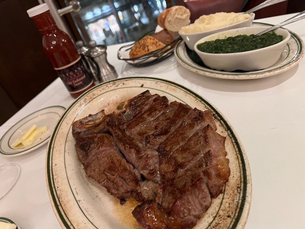 料理の方は文句のない赤みのTボーンステーキで前菜やパン類含めた量もちょうど良かっです。