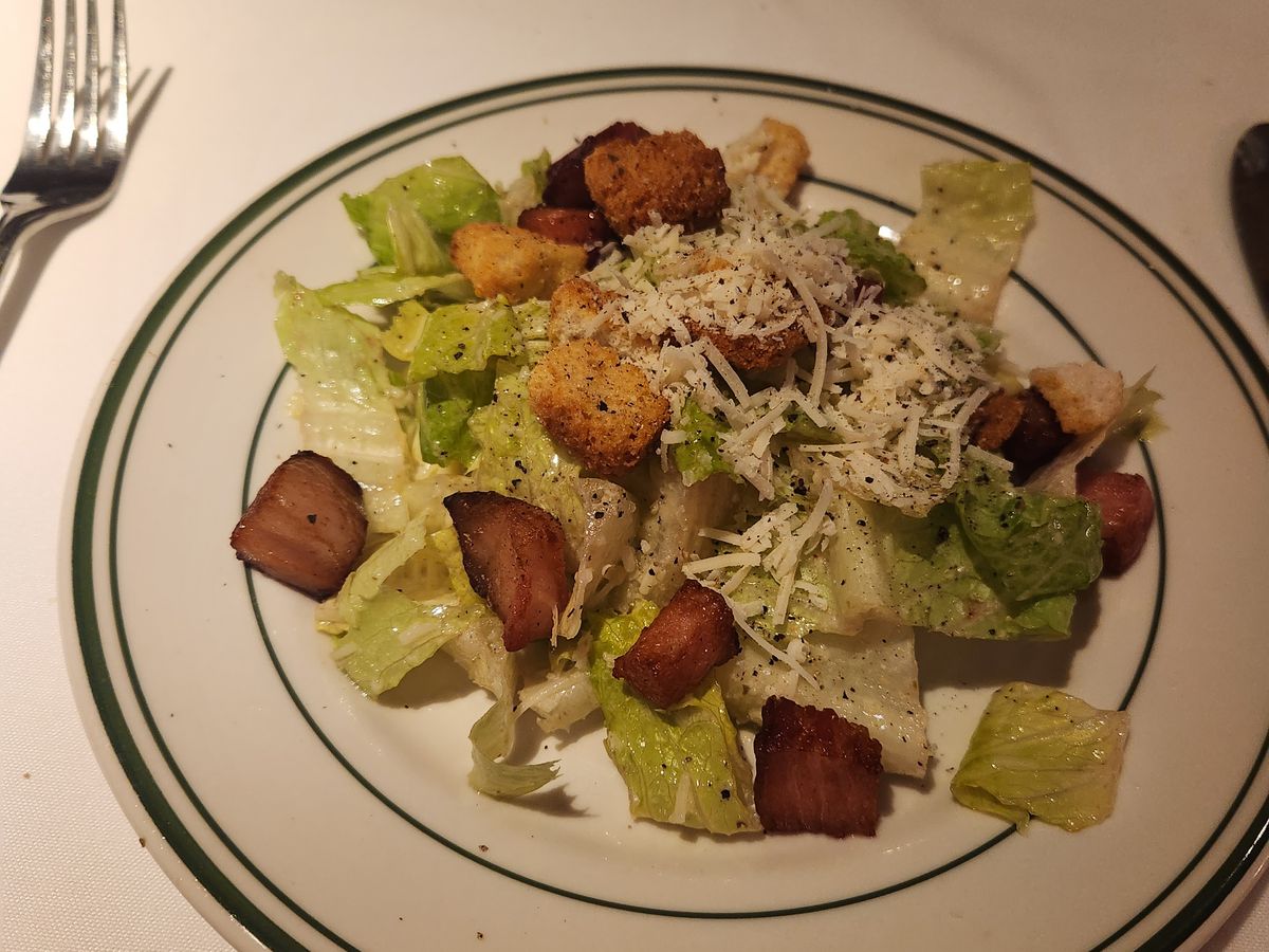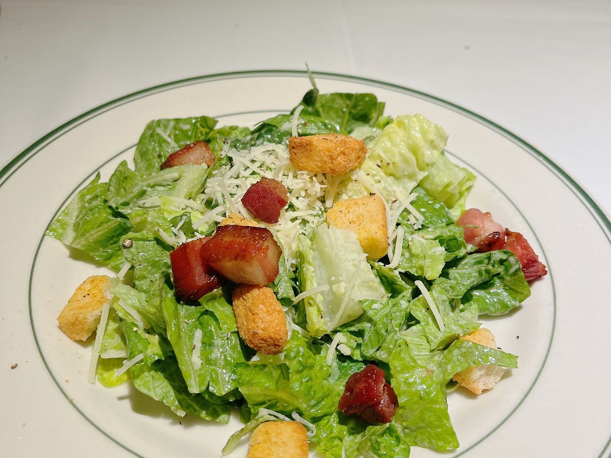そのあとに、ベーコン・クルトンとレタスのサラダが。ベーコンがかなり脂っこくて、でもジューシーで美味しかったです。(この時点で結構お腹いっぱい)