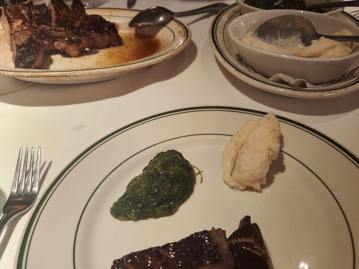 にこやかで親切でした。妻と私はメインとサイドは別々で頼みました。私はヒレ、妻はシュリンプです。あとはホウレンソウとマッシュポテトです。