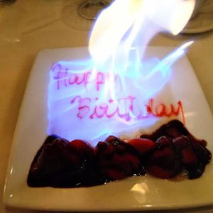 誕生日だと伝えると、イチゴにソースがかかっていて、Fire!!!