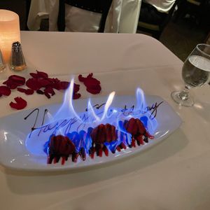 長男、次男夫婦2組とお孫ちゃん、私たち夫婦7人で参加しました。テーブルを担当して下さったスタッフの方の気遣いが素晴らしく良い時間を過ごさせて頂きました。来店時に何かanniversaryか尋ねて下さり、長男のハネムーンも兼ねていると伝えるとメッセージ入りのデザートプレートや、2才の孫はコース料理の人数には含まれていないプランの詳細でしたが、ドリンク、デザートのアイスクリームをサービスで用意して下さいました。お料理もとても美味しく、ボリュームもあり、家族みんな大満足です。