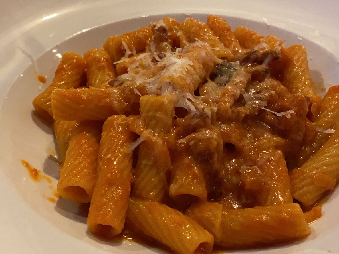 パスタはアラビアータかカルボナーラの選択でした。私はアラビアータを選択しましたが量も多すぎず上品で、牛肉も薄切りのルッコラ添えで、ちょうど良い量でした。味付けは言わずもがな。子どものボロネーゼペンネも、味がしっかりしていても食べやすいようでした。
