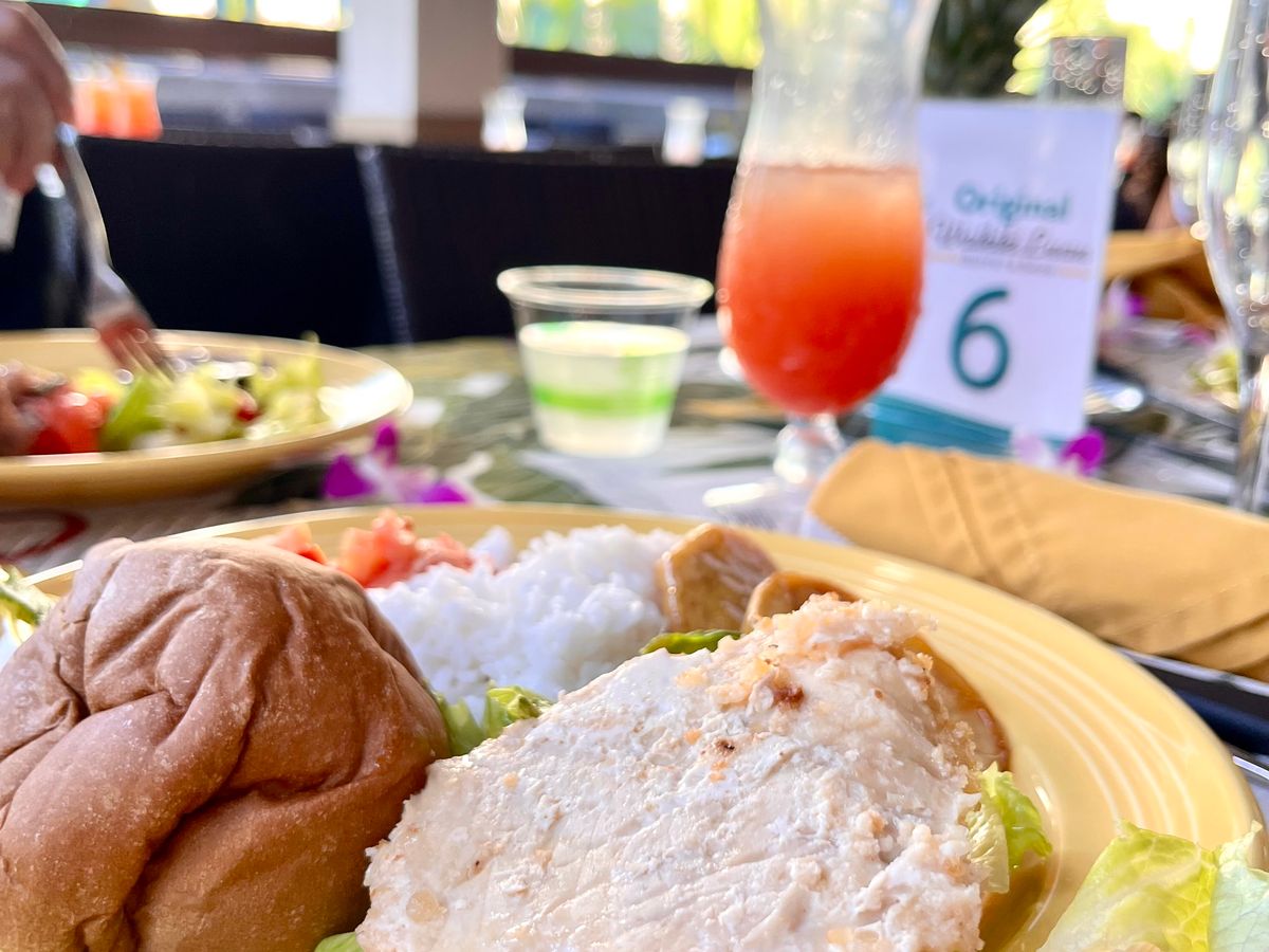 料理もハワイの地元の食材を使ったものが多く、パイナップルが各テーブルに一つあったり、ウェルカムドリンクのマイタイカクテルも美味しく頂きました!