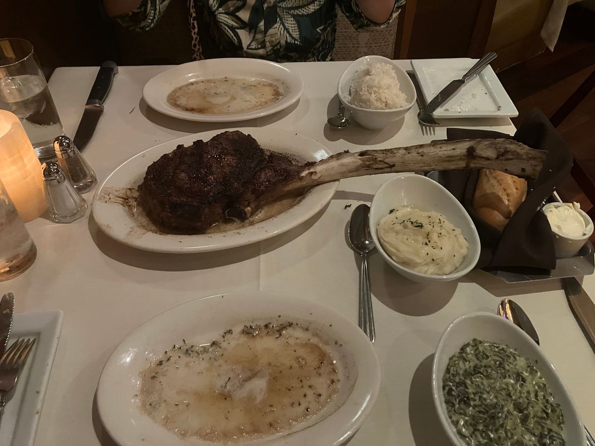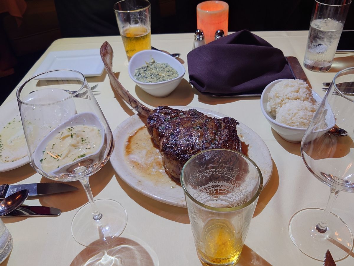トマホークステーキはまず写真を取ってから切り分けていただきました。肉は柔らかくて最高に美味しかったです。店員さんのサービスも良かったです。